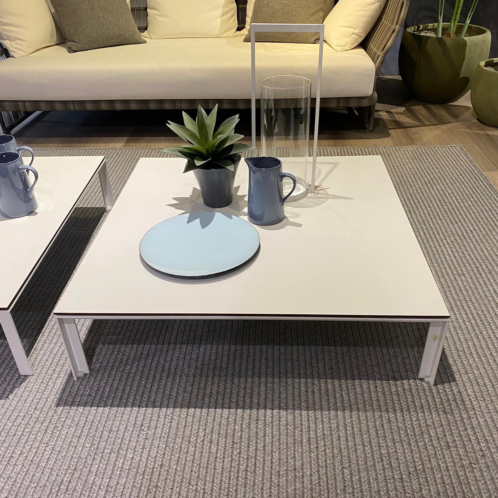Tavolino outdoor modello Ravel strutt. bianca e piano HPL bianco.