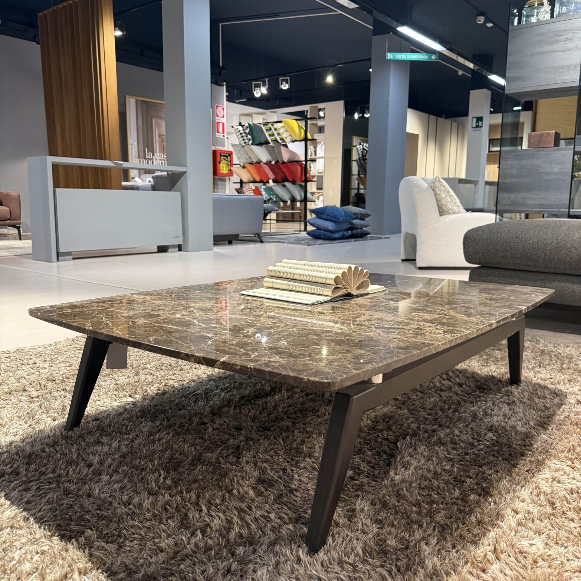 Tavolino modello David con base in legno tinto Eucalipto e piano in marmo Dark Emperador.