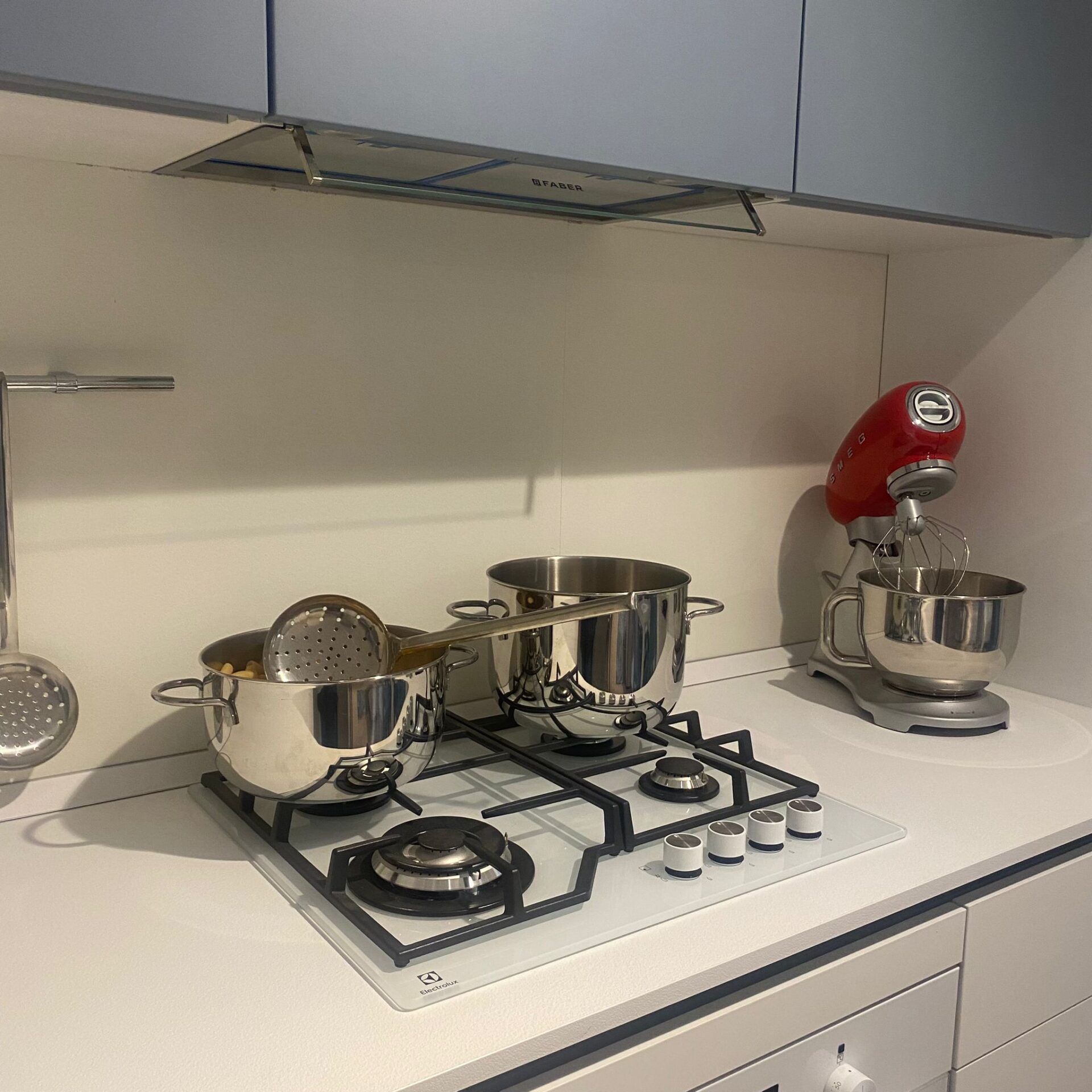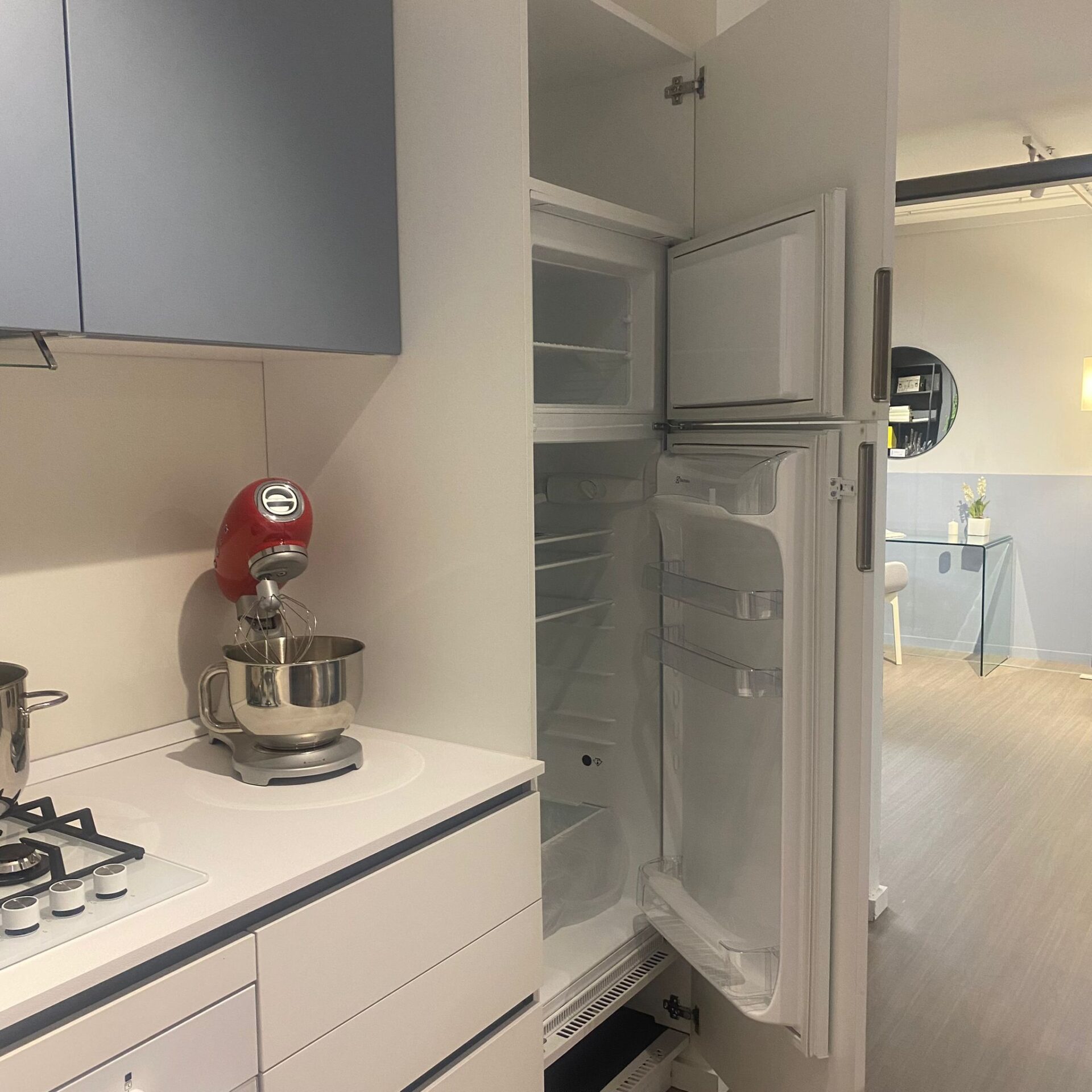 Cucina di Forma 2000 modello Colibri Blues completa di top in laminato ed elettrodomestici (lavello Elleci, lavastoviglie Whirpool, cappa Faber, forno – piano cottura e frigo Electrolux).