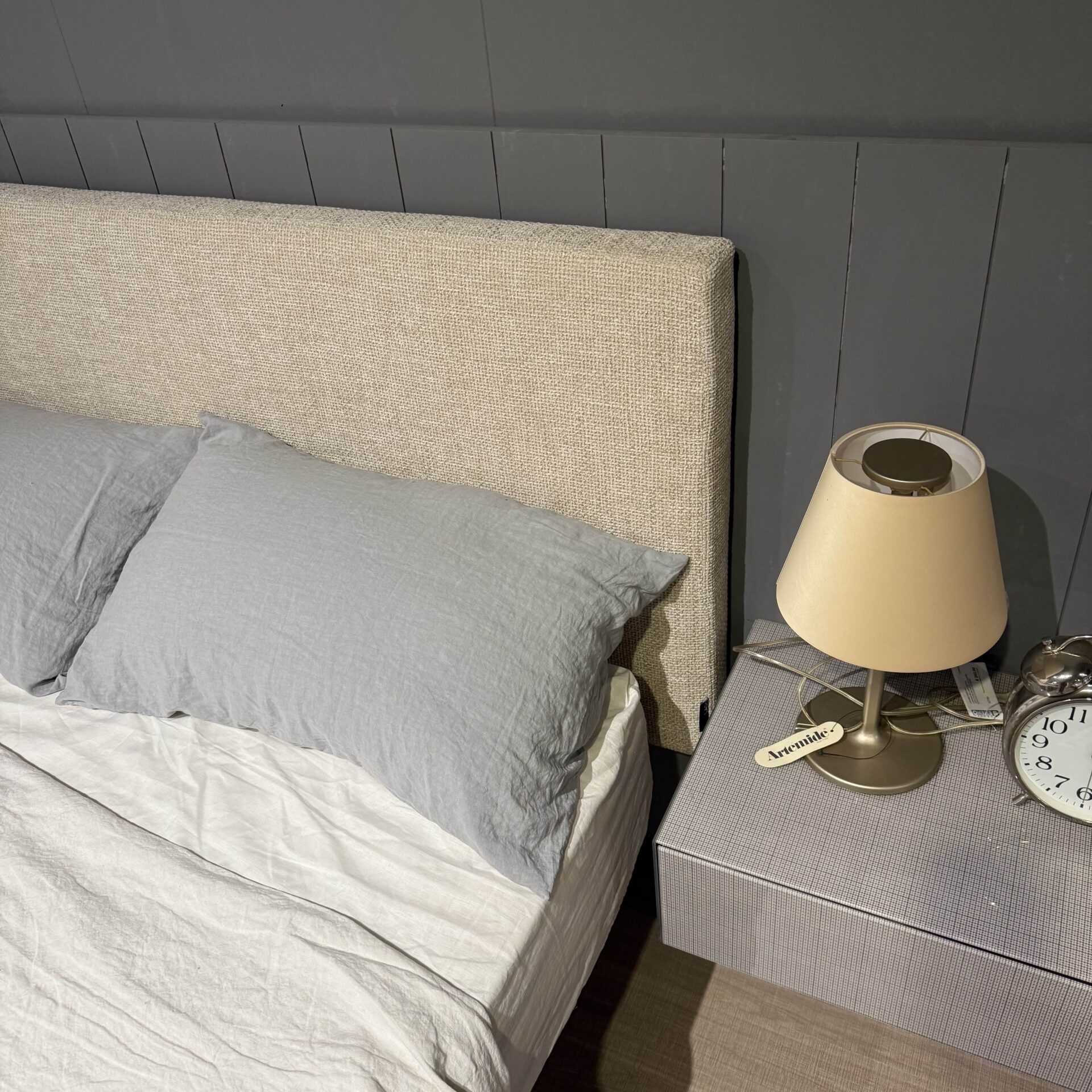 Testiera rettangolare tess. Axum 1 con illuminazione sotto rete, escluso il materasso.