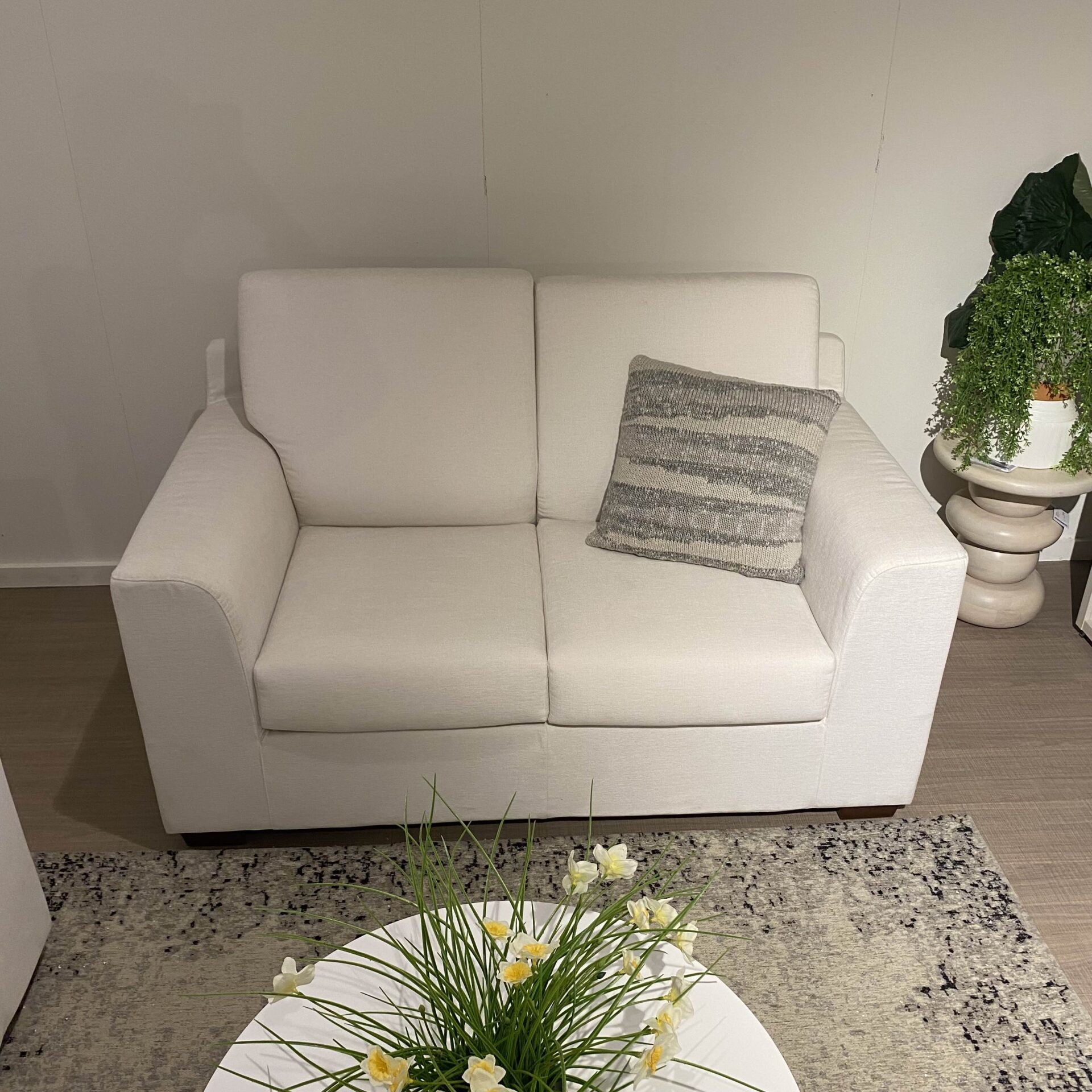 Divano due posti modello Roma in tessuto Maia bianco.