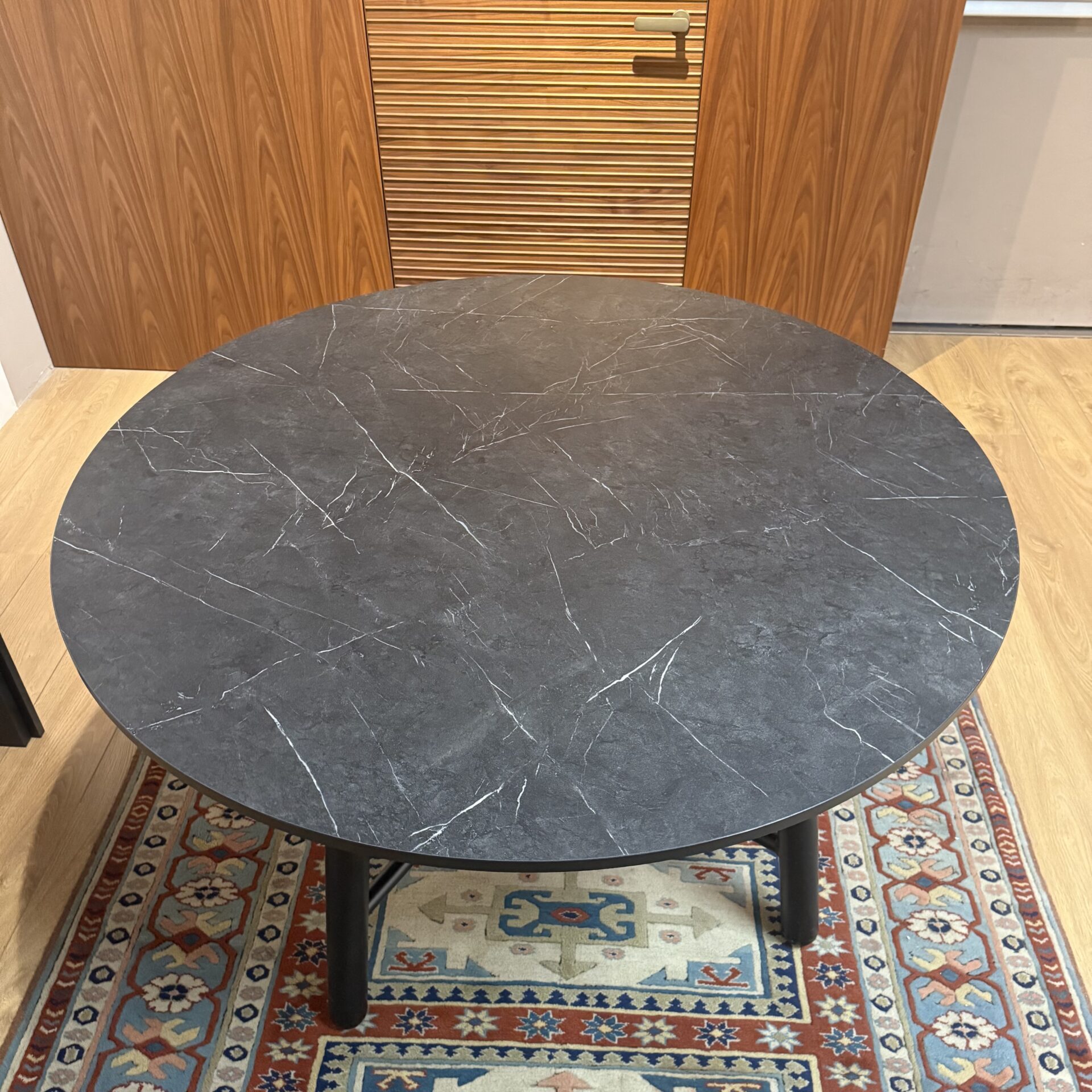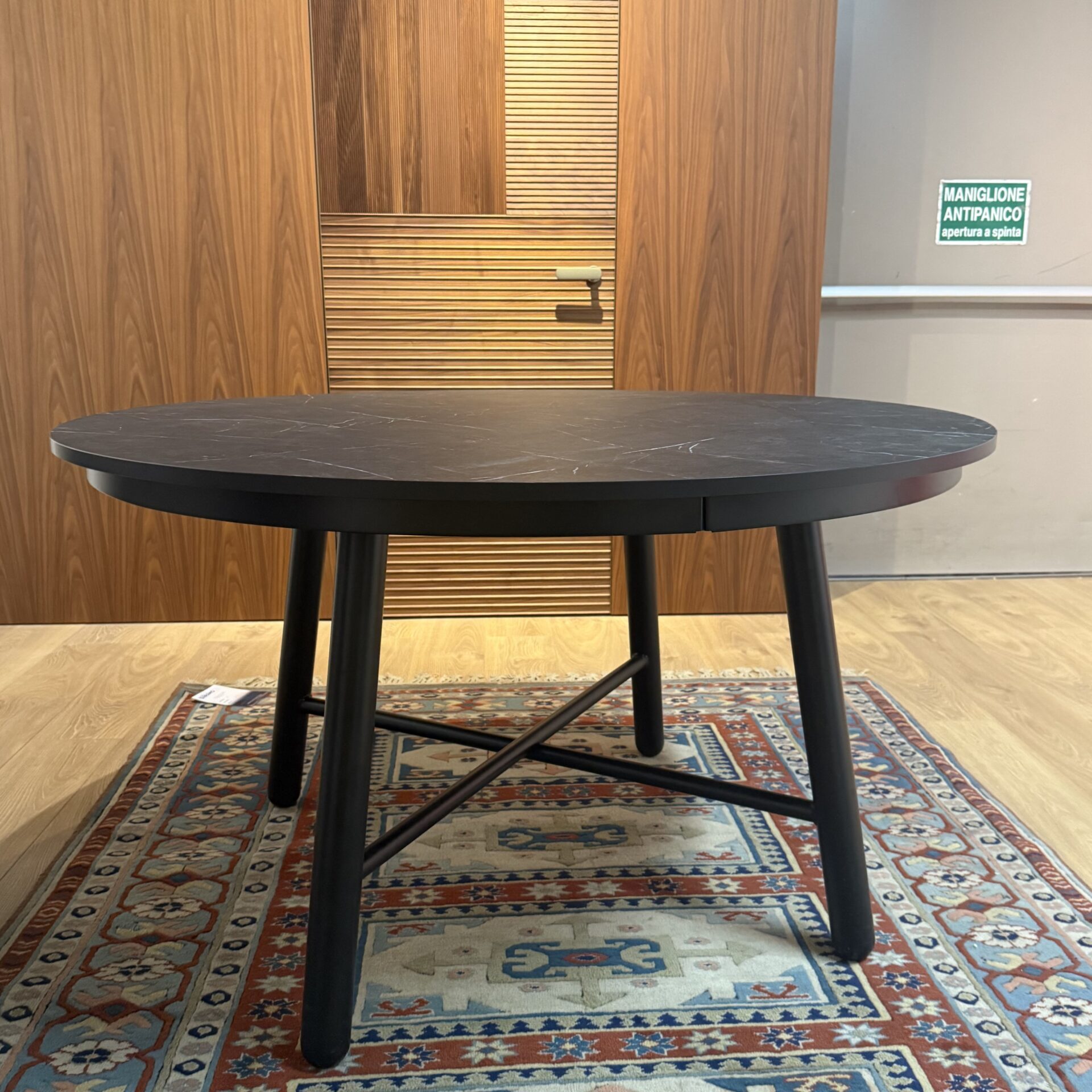 Tavolo modello Combo rotondo fisso con struttura nera e piano in marmo nero.