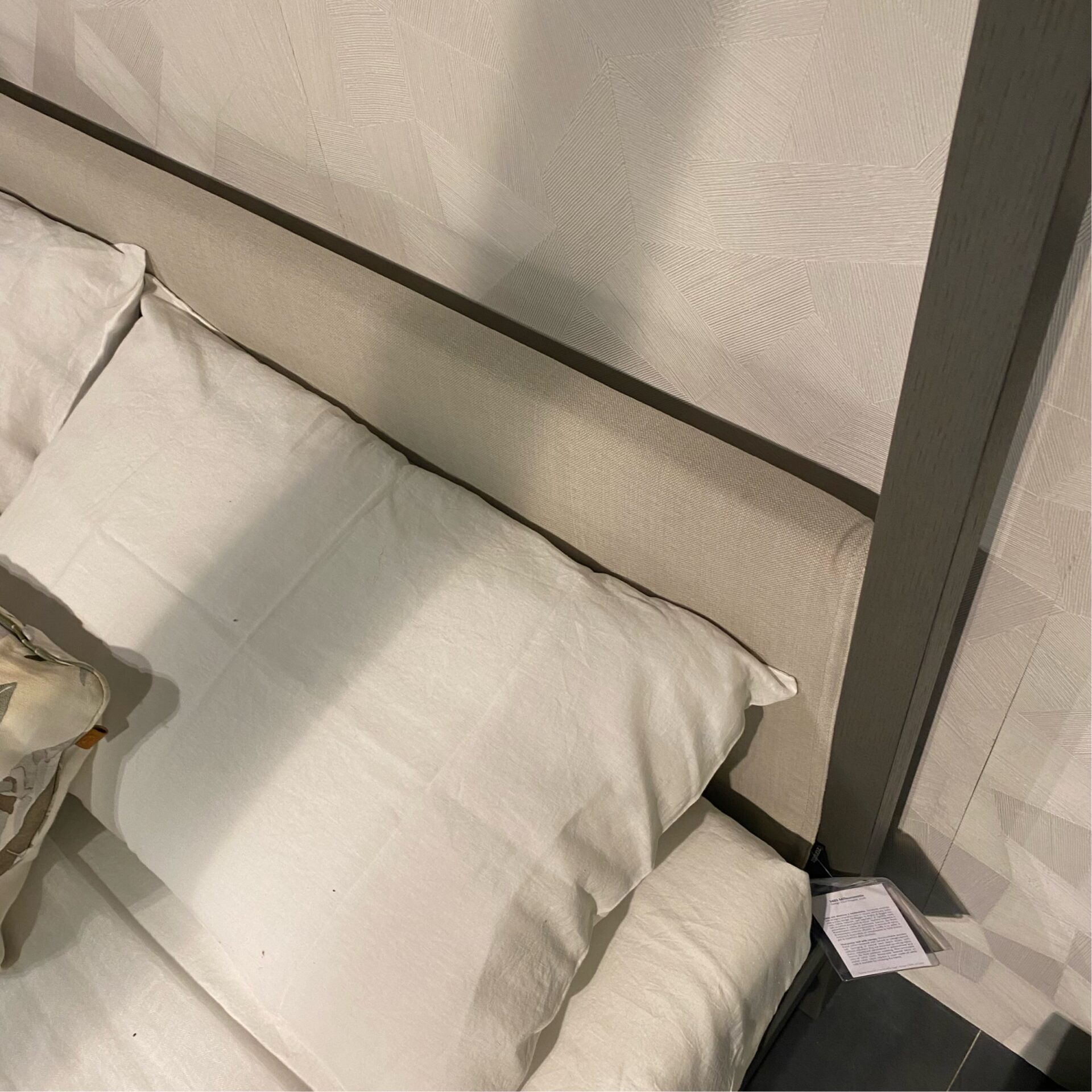 Struttura rovere grigio, schienale rivestito in tessuto Vale (cat.20) colore grigio chiaro.