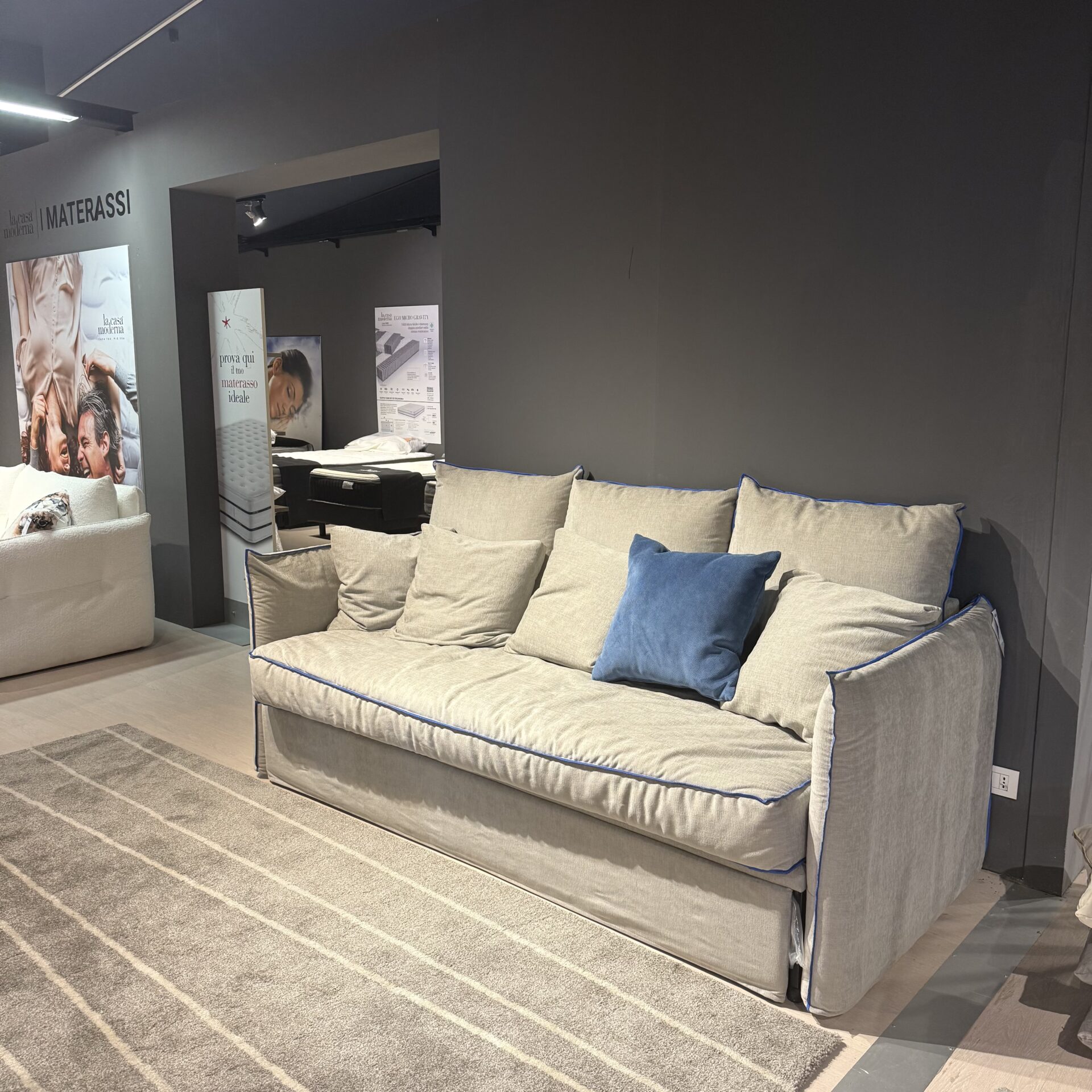 Visita il nostro showroom in Via Torino 67, Centallo, a soli 10 minuti da Cuneo, con parcheggio gratuito e personale esperto pronto ad aiutarti nella scelta del divano perfetto.